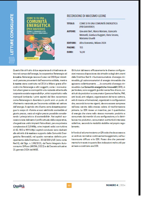 Questo libro è frutto di due esperienze di cittadinanza attiva nel campo dell’energia, le cooperative Retenergie ed ènostra. Retenergie nasce a Cuneo nel 2008 per iniziativa di persone provenienti dall’economia solidale, mentre ènostra viene costituita nel 2014 a Milano grazie all’incontro tra Retenergie e altri soggetti, come i «consumatori urbani green e cosmopoliti» e leContinua a leggere “Come si fa una comunità energetica (per davvero!)”